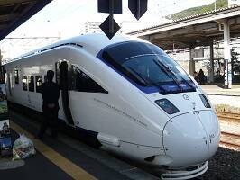 こちら特急「かもめ」 白い車両がかわいくて乗りたかった。「長崎」駅〜「鳥栖」駅まで乗りました。座席が黒の革張りでふかふかでした。乗り心地の良さにいつしか眠ってしまう。 |