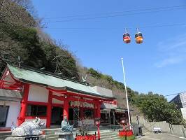 神社のすぐ脇の上空に眉山ロープウェイが通ります。確か、尾道とかでもそうだったな。あれは真上を通っていた気がする。雰囲気的に人がいないかなぁと思ったけど、無事いらっしゃって御朱印の対応をしていただけました。天満宮は天満宮用の御朱印帳にしてるんだけど、それに気づいてくれたようで、ちと嬉しい。 |
