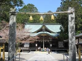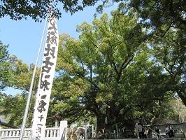 徳島市内からレンタカーで鳴門方面へ。四国88ヶ所の第一番札所霊山寺のから少し上ったところに大麻比古神社は鎮座する。四国88ヶ所も気になるけど、定年後にとっておく。1,000台以上置けそうな広い駐車場から境内へ進むと、巨大な楠が。樹高22mもあるんだそうな。この辺りは春の風が通り抜けて気持ちいい。 |