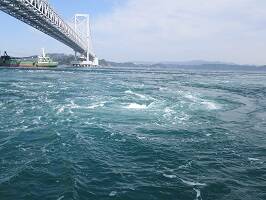少々寂れ感があるものの広い境内。この寂れ感がまたいい味を出している。参拝後、社務所に向かうもインターホンがない。が、ぷちだぼんの力を借りて無事御朱印を頂けた。ありがたい。お昼時にすみませんと声を掛けると、いえ大丈夫ですよと。旅先だと時間調整が難しいのよね。そして鳴門海峡へ。 |