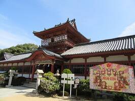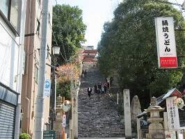 道後温泉駅からまっすぐ先に見える階段、そこを登ると伊佐爾波神社です。レンタカーは返して電車で道後温泉まで来たので、重い荷物を持ちながらの参拝。階段が辛かった。まぁ荷物だけでなく自分も重いですが。階段の下から見えるこの建物は拝殿かと思ったら、楼門らしい。楼門に回廊がつながっているらしい。 |
