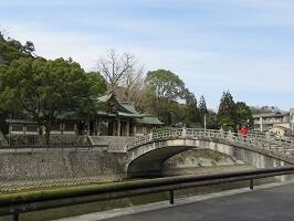 石造りの大鳥居は日本一の大きさ。・・・らしいが、本当?色々な神社を見てきたけど、石造りで日本一ってこと?うーん、石造りでは思いつかないかな。私的には太鼓橋の方が気になる。なんてことない石造りの太鼓橋だけど、なんかいいなぁって。 |