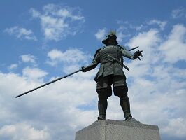 長宗我部元親の銅像です。長い長い参道の途中にあるので、本殿に一番近くの駐車場に止めると参道を戻る形になります。凛々しい銅像だったけど、天気が良すぎてどこから撮っても逆光みたいになって、うまく撮れませんでした。参道をもう少し進むと、どろんこ祭りの会場?がありました。 |