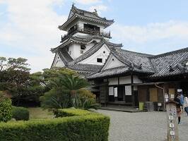 最後の目的地、高知城へ。ここまで至って順調にきて時間余っちゃうかもねぇ。なんて話をしてたのに、高知城付近で大渋滞。そっか、高知には日曜市ってのやってるんだ!高知城のそばだから駐車場も満杯。駐車場のおっさんたちもむやみに観光バス入れたりしてたら入り口詰まっちゃって空いてるのに入れない。結局30分程待って駐車場に入れた。 |