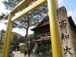 待ってる間に腹が減ってしまった。ので、高知城はすすっと早めの観光。人多かったし・・・。で、ご飯さがし。ぷちだぼん検索で近くに旨そうな鰻屋さんが。ひろめ市場と迷ったけど、日曜のひろめ市場は難易度高かったので、鰻屋さんを目指す。なんてウロウロしていたら高知大神宮なるものを発見。 |