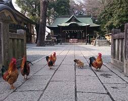 正面から写真を撮ろうかなと思ったら、境内にいるチャボが集まってきた。なんで??北海道でもアルパカが私が移動する度ずっとこっちを向くし、長崎でも鶏が集まってきた。なんなんだ?なにかくれそうな顔してるのかな? |
