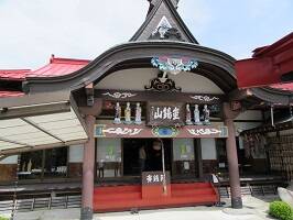 ちょっと不思議な本堂。中へ入って少々説明を受ける(内容は忘れた)。そして問答無用で胎内湯という苦いお茶を飲まされる。健康茶らしいが、かなり苦い。が、ちと癖になりそうである。御本尊の目の前まで行ってお参りできるのはありがたい。 |