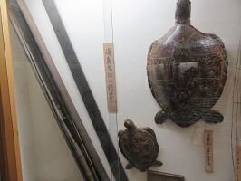宝物館には浦島太郎の釣り竿や、亀。さすがに竜宮城に連れて行ってくれた亀ではないだろうけど。そもそも寝覚めの床ってのが浦島太郎が竜宮城から帰ってきたら時間がたっているため知人もなく旅に出て、ここで玉手箱を開けて夢のようだったなと目覚めたって伝説によるものらしい。 |