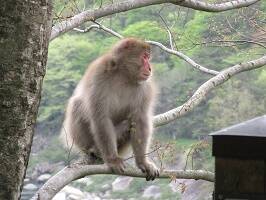 ガサッ、ゴソッ、音がするぞ。と思ったら、かなりのでかさのお猿が出現した。ふっさふさだね毛が。枝の先っぽのほうまで行って、折れて落ちそうだったけど、すいすいと木々を渡って、行ってしまった。 |