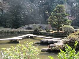 御朱印の右下の小さめの印は月ごとに違って、12種類あるもよう。社務所のガラスに貼ってありました。3月だったので蝶の印でした。 境内にある庭園も素敵でした。古代舞楽の楽器を模した地泉廻遊式というらしいんだけど、なんとか式って難しいね。 |