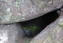 | なんだよー、って思いながらもしぶとく見ながら進んでたら、あれ?光ってる!写真は少々失敗したけど、微妙な光の入り具合と見る角度で光ってる。ちょっと感動。少し横に動くとただの苔に。上の写真の右の石垣の辺り。季節とか時間帯とかで違うんだろうな。 | ![]() |
